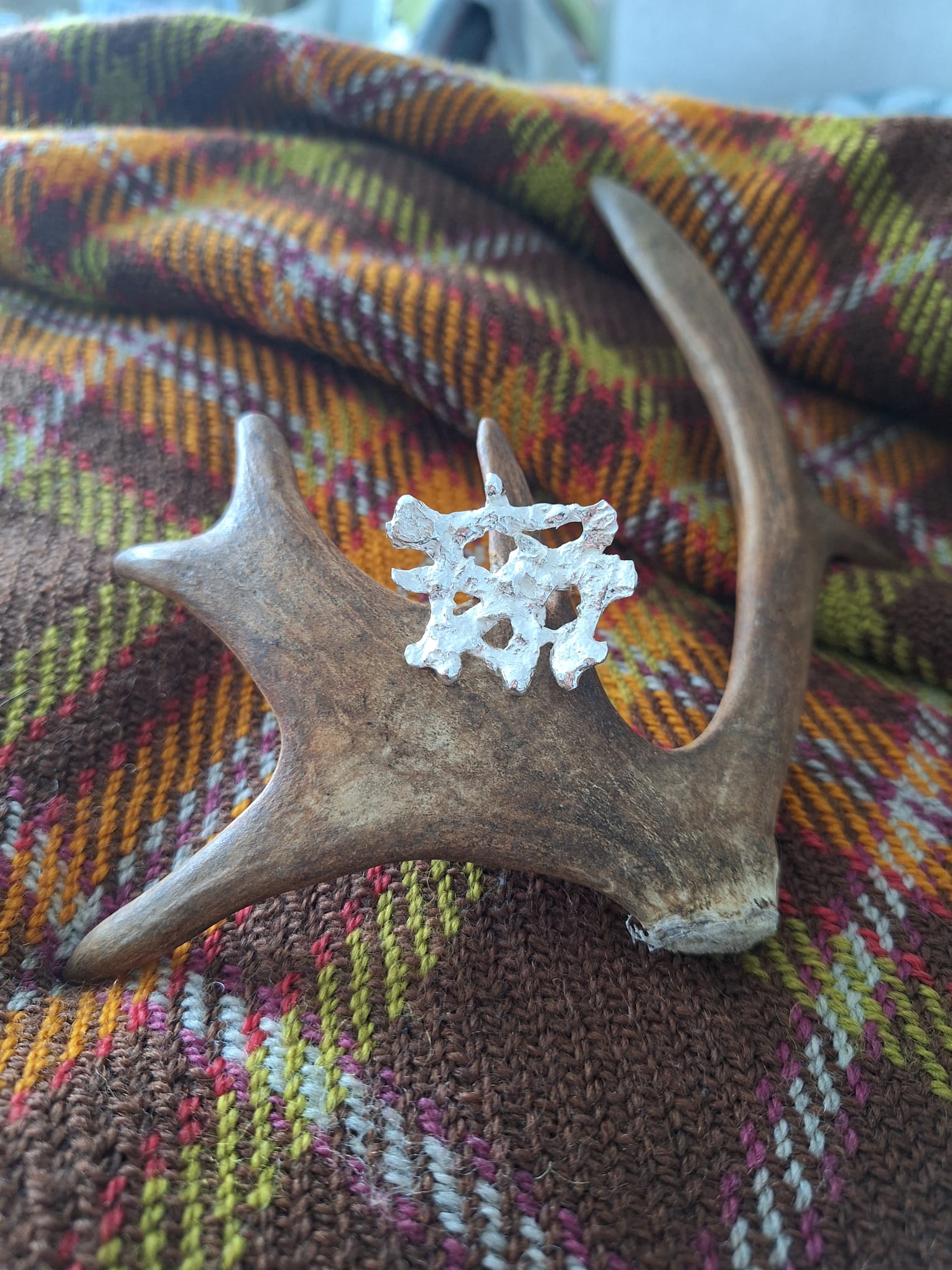Koruni syntyvät rakkaudesta Lapin luontoon ja sen ainutlaatuisiin materiaaleihin. Hopean rinnalla käytän mateen- ja lohennahkaa, poronsisnaa sekä koparia – jokainen materiaali kertoo