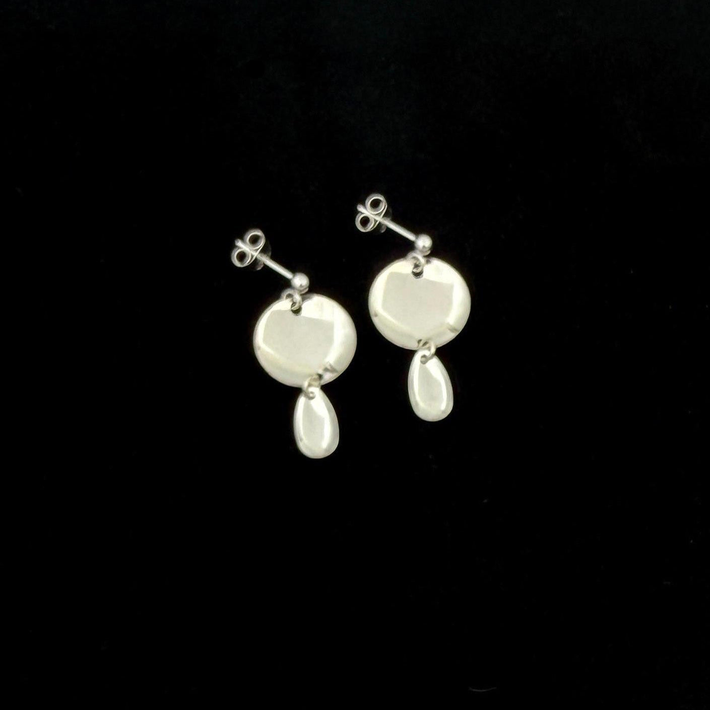 Nämä minimalistiset laukkas-korvakorut ovat täydellinen valinta. Niiden puhdaslinjainen muotoilu yhdistää kaksi hopeista, sileäpintaista ja kuperaa laukkasta: suuremman pyöreän ja pienemmän pisaran. Tämä dynaaminen yhdistelmä luo keveän liikkeen ja upean valon leikin. Nappikiinnitys takaa käyttömukavuuden. Nämä korut tuovat asuusi modernia eleganssia ilman, että ne tuntuvat raskailta tai liian huomiota herättäviltä.